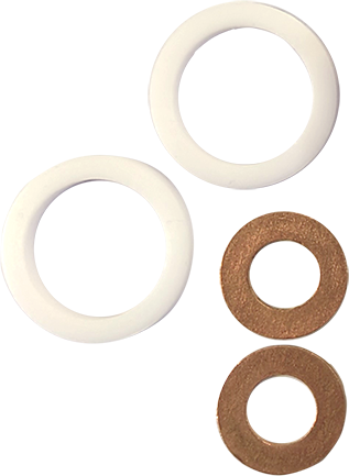 Медная прокладка 16,7×9×1,5 мм – 2 шт. Фторопластовая прокладка 24×18×2,5 мм – 2 шт. |