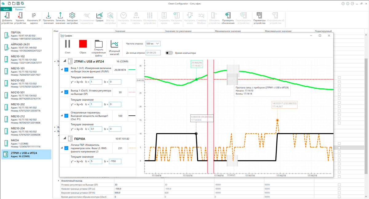 Owen Configurator – это бесплатное программное обеспечение для удобной настройки и параметрирования устройств ОВЕН. С его помощью можно изменять конфигурацию, задавать уставки, просматривать текущие параметры и сохранять их в файлы для последующего использования.